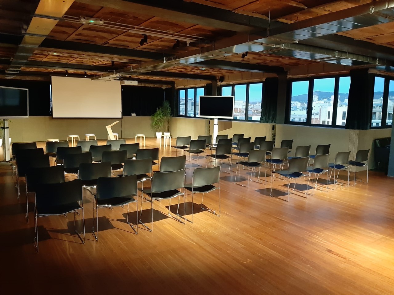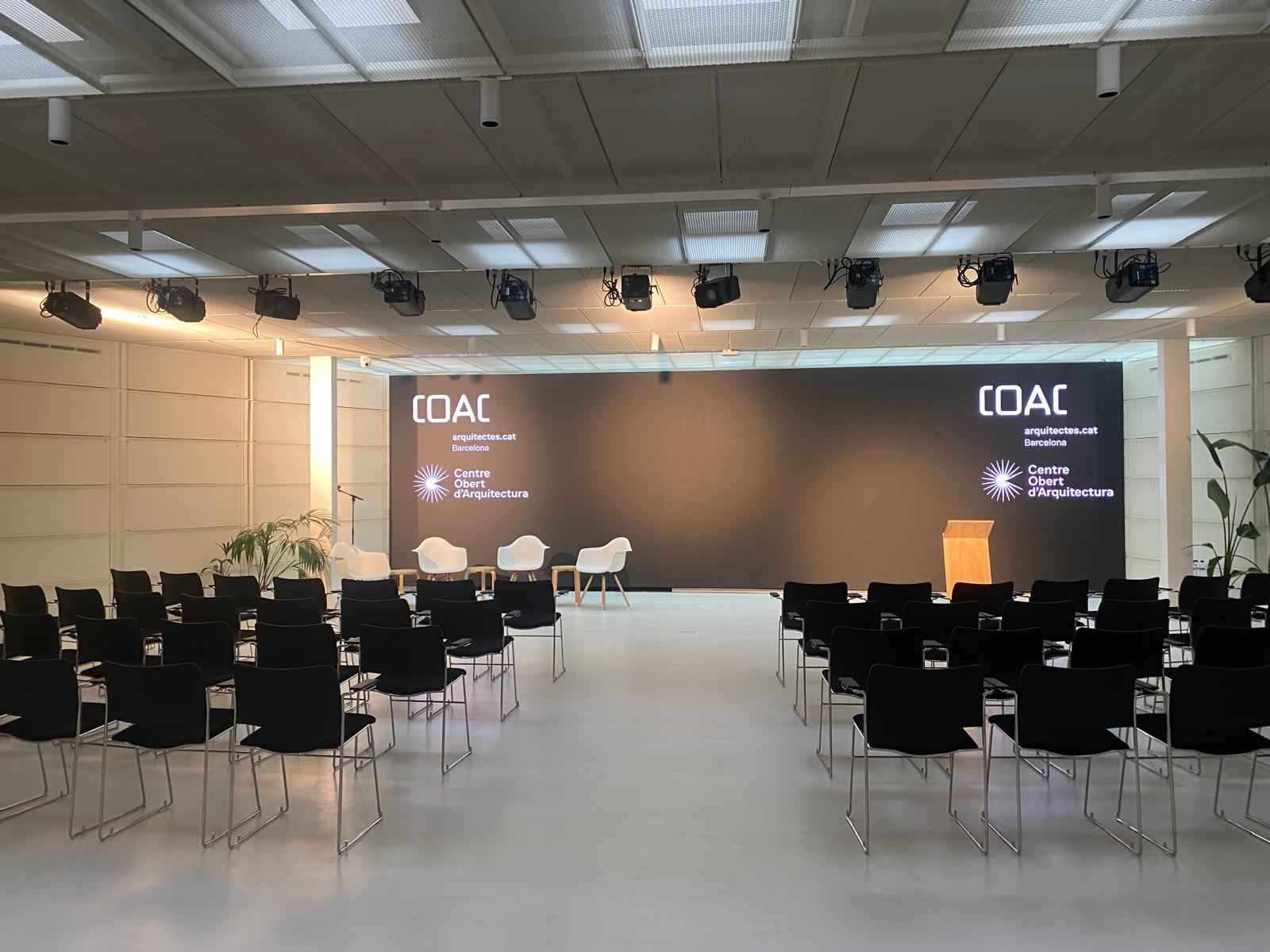 La seu del Centre Obert d’Arquitectura de Barcelona disposa d’uns espais totalment renovats (2022) que els fan uns espais versàtils equipats amb la última tecnologia audiovisual.