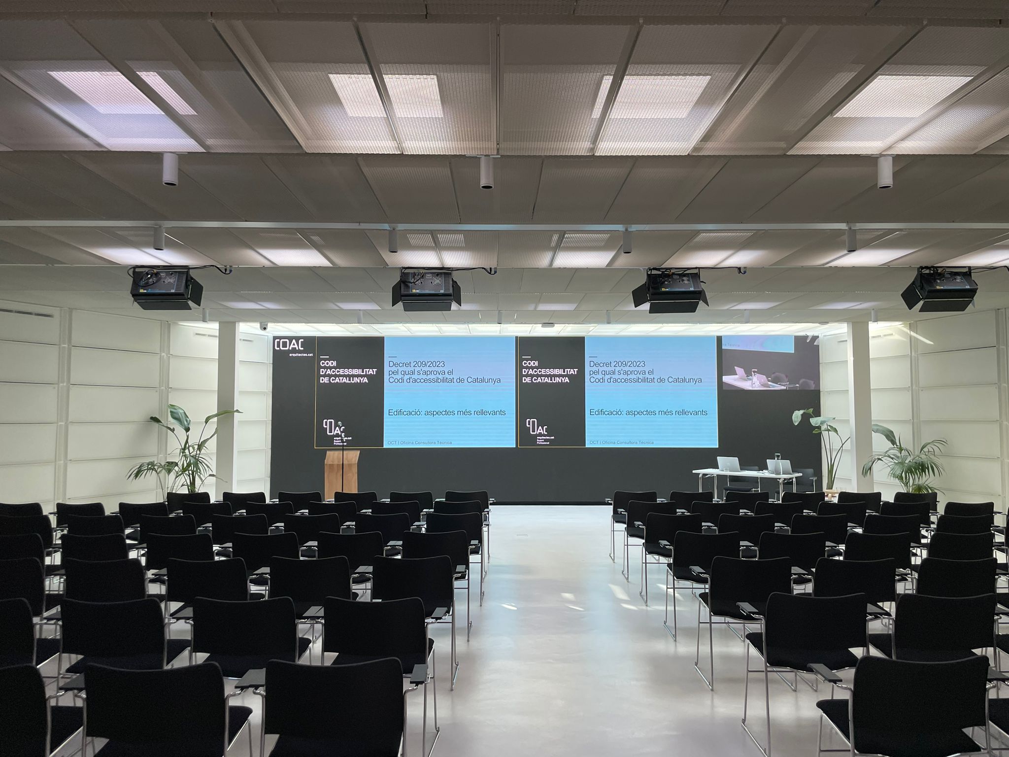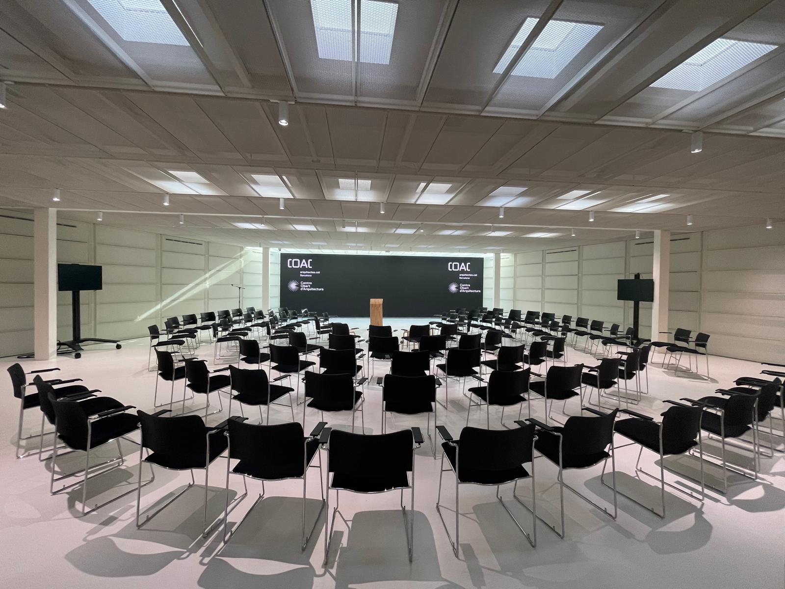 El nou espai ubicat a la 2a planta del COAC és una sala polivalent completament nova i diàfana de prop de 200 m2 que la fan ideal per a organitzar-hi tot tipus d’esdeveniments de petit format: des de dinars, conferències, exposicions, …