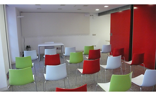 Espai polivalent. Es pot dividir en dos mitjançant uns panells de fusta que permetendisposar de dos espais independents. Ideal per a cursos de formació, seminaris, conferències de petit format, presentacions i reunions empresarials.