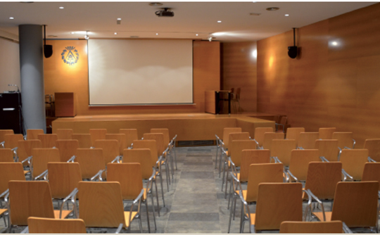 La seu de Lleida disposa d’una sala d’actes tipus auditori. És un espai hàbil per acollir tot tipus de presentacions, seminaris i conferències.